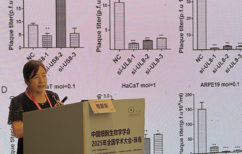 骨代谢研究室成员合影 骞爱荣教授受邀出席“非编码RNA在重要生命活动过程中的功能机制”专题分会场,并作大会报告,题为“生物重组siRNAs抗人α-亚科疱疹病毒研究”。报告系统介绍了课题组在病毒RNA干预方向的最新研究进展,并结合国际研究动态,深入探讨了生物重组siRNAs在抗病毒治疗中的机制与应用潜力。该报告引发了广泛关注,与会专家反响热烈,并就未来合作方向进行了深入交流,为后续研究合作奠定了良好基础。